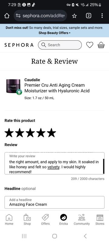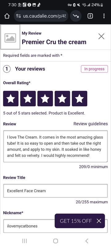 I am so happy that I purchased the Premier Cru trio set consisting of the serum, cream and eye cream. Not only does it save money but all three products are amazing. All three products leave my skin feeling nourished, healthy and soft. I have been using Caudalie for years and my friends always comment on how wonderful my skin looks. Thanks Caudalie for the great products that always make me feel beautiful!
